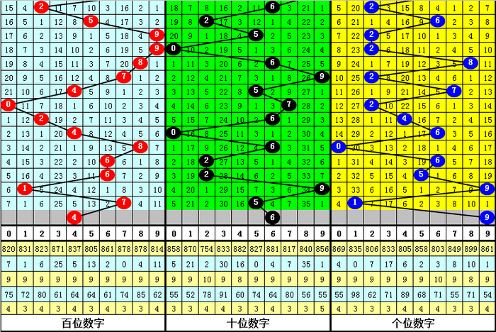 百位推选:上期开出号码7,为大号、奇数、1路号码,该位前7期大小比为4:3,小 号出现较少,本期安定回补;