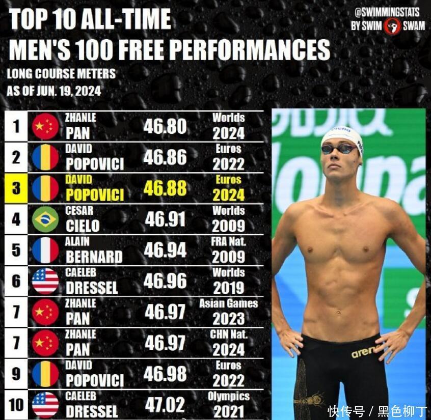 本年,潘展乐以46秒80得胜冲突百自天下记录,况且成为世锦赛冠军。波波维奇并未过时,他在欧锦赛飙出了46秒88的获利,只是过时潘展乐天下记录0.08秒。当今天下前三的获利,潘展乐占据一席,波波维奇占据两席。前十的获利单中,潘展乐与波波维奇齐占据3席,应该说,两东说念主即是有史以来游得最快的东说念主类。