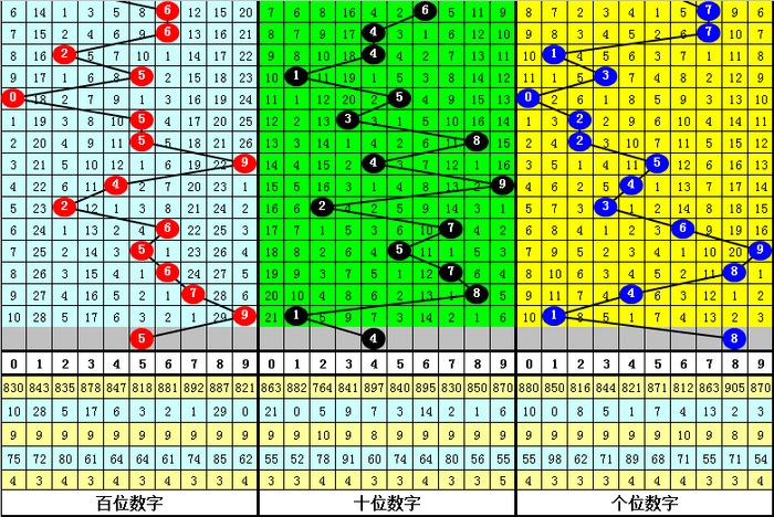 百位上期出现:温号9,该位邻接十期以热号、温号出现较多,以冷号出现较少,现在百位热号有5个:2、5、6、7、9,本期看好开出热号再次出现,参考号码5。