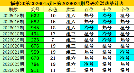 上期归来:福彩3D第2026024期开奖奖号为:911,奖号类型为:组三,奖号冷温热态为:温号+温号+温号。